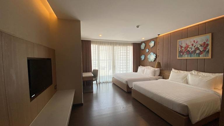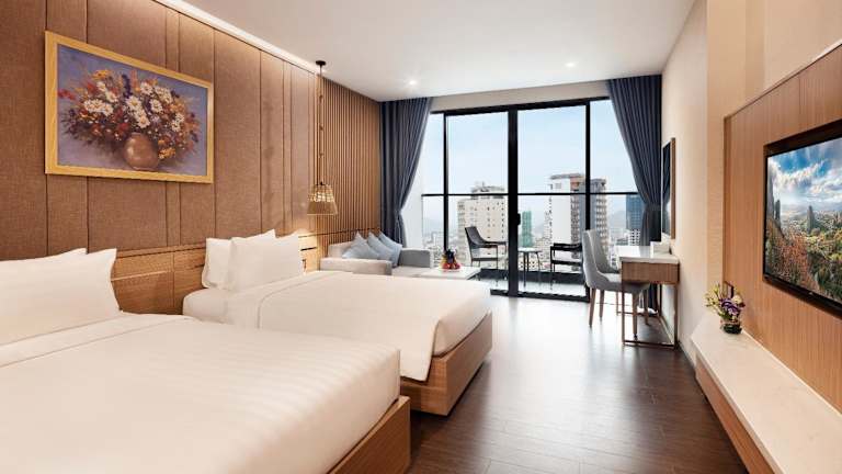 Die klimatisierten Zimmer sind mit einem Schreibtisch, einem Wasserkocher, einer Minibar, einem Safe, einem TV und einem eigenen Badezimmer mit Dusche ausgestattet. Einige Zimmer verfügen über einen Balkon mit Stadtblick, und alle Gästezimmer sind mit einem Kleiderschrank ausgestattet.
