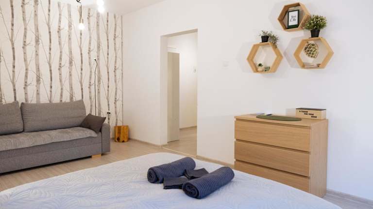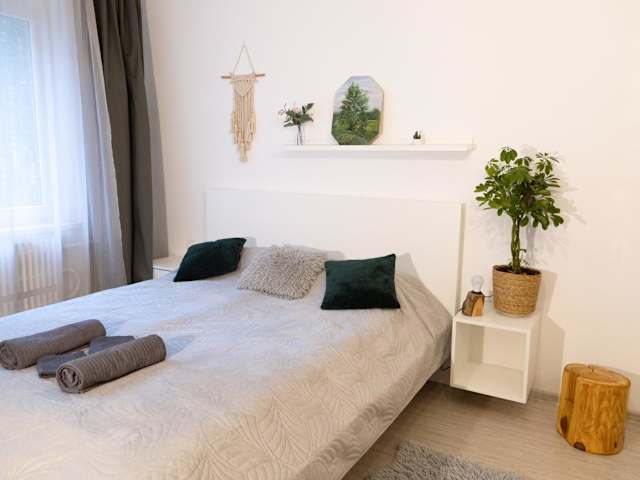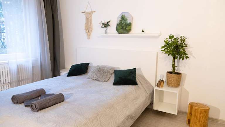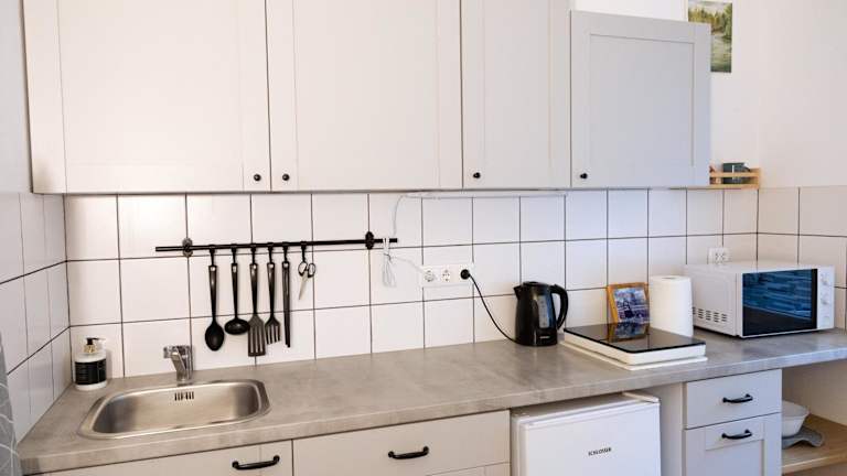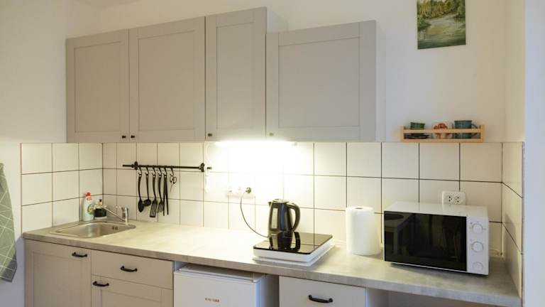Die Ferienwohnung umfasst 1 Schlafzimmer und bietet eine Küche, die mit einem Kühlschrank und einer Mikrowelle ausgestattet ist. Des Weiteren verfügt sie über 1 Badezimmer mit Dusche, Haartrockner und Waschmaschine. Handtücher und Bettwäsche werden bereitgestellt.