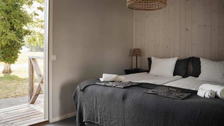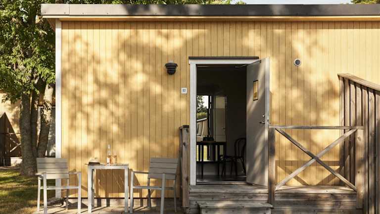 Das Feriendorf befindet sich am Strand, etwa 3 km nördlich der mittelalterlichen Stadt Visby. Es bietet kostenlose Parkmöglichkeiten und ist umgeben von naturnahen Wander- und Joggingstrecken.