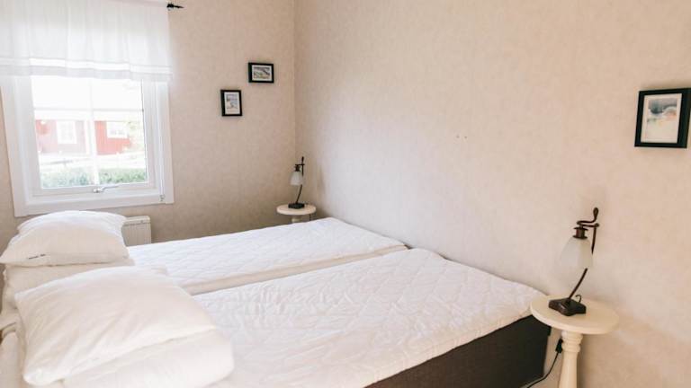 Die Zimmer im Visingsö Vandrarhem sind in mehreren kleinen Holzhäusern untergebracht, die sich etwa 50 m vom Hauptgebäude entfernt befinden. Jedes Zimmer ist mit einem kleinen Sitzbereich ausgestattet und bietet Gartenblick. Die Toiletten und Duschen werden gemeinschaftlich genutzt. Bettwäsche und Handtücher sind nicht im Preis enthalten und können vor Ort entliehen werden.
