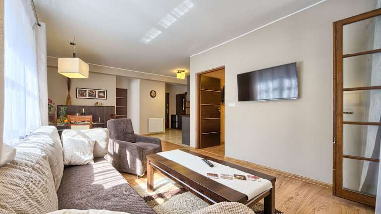 Das VisitZakopane - Dubaj Apartment ist modern und in warmen Farben gestaltet. Das Apartment verfügt über ein gemütliches Wohnzimmer mit einem Flachbild-TV und eine voll ausgestattete Küchenzeile, in der Sie Ihre eigenen Mahlzeiten zubereiten können. Ein Balkon und ein Badezimmer mit Dusche und Haartrockner gehören ebenfalls zur Ausstattung. Kostenloses WLAN steht Ihnen im gesamten Apartment zur Verfügung.