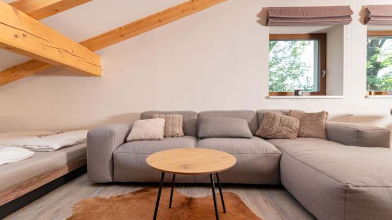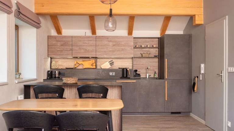 Die Ferienwohnung besteht aus einem Schlafzimmer, einem Wohnzimmer sowie einer voll ausgestatteten Küchenzeile, die mit einem Kühlschrank und einer Kaffeemaschine versehen ist. Außerdem verfügt die Unterkunft über ein Badezimmer mit einer Badewanne oder Dusche. Handtücher und Bettwäsche werden bereitgestellt.