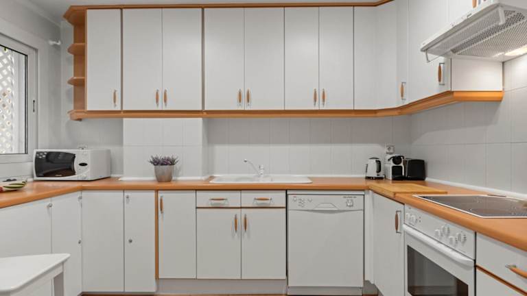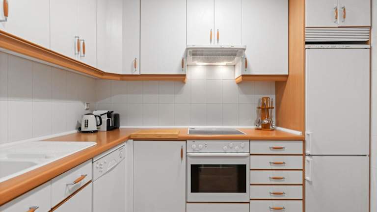 Die Ferienwohnung verfügt über zwei separate Schlafzimmer, ein Wohnzimmer und eine voll ausgestattete Küche mit Kühlschrank und Geschirrspüler. Es stehen zwei Badezimmer zur Verfügung. Handtücher und Bettwäsche werden bereitgestellt.