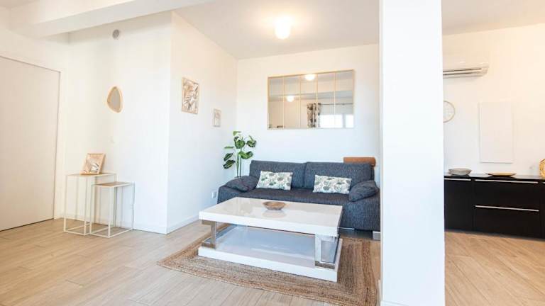 Die Unterkunft verfügt über ein Schlafzimmer und ist ausgestattet mit einer Küche, die einen Kühlschrank und einen Geschirrspüler umfasst. Zur weiteren Ausstattung gehören ein Flachbild-TV, ein Sitzbereich sowie zwei Badezimmer mit Duschen. Die klimatisierte Wohnung bietet zudem eine Terrasse und einen Balkon.