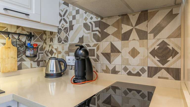 Die Unterkunft verfügt über eine gut ausgestattete Küche mit einem Kühlschrank und Geschirrspüler, die es ermöglicht, eigene Mahlzeiten zuzubereiten. Weitere Verpflegungsmöglichkeiten sind nicht angegeben.