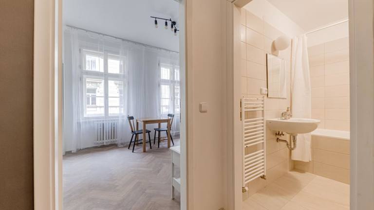 Die Vita Nejedleho Apartments sind eine moderne Unterkunft in Prag mit kostenlosem WLAN. Die Apartments sind mit Parkettböden ausgestattet und bieten eine voll ausgestattete Küche, die unter anderem einen Kühlschrank, eine Herdplatte und einen Wasserkocher umfasst. Das eigene Badezimmer ist mit einer Badewanne und kostenlosen Pflegeprodukten eingerichtet. Den Gästen stehen ein Essbereich, ein Flachbild-TV sowie schallisolierte Zimmer zur Verfügung. Zu den weiteren Ausstattungsmerkmalen gehören Nichtraucherzimmer und ein Aufzug.