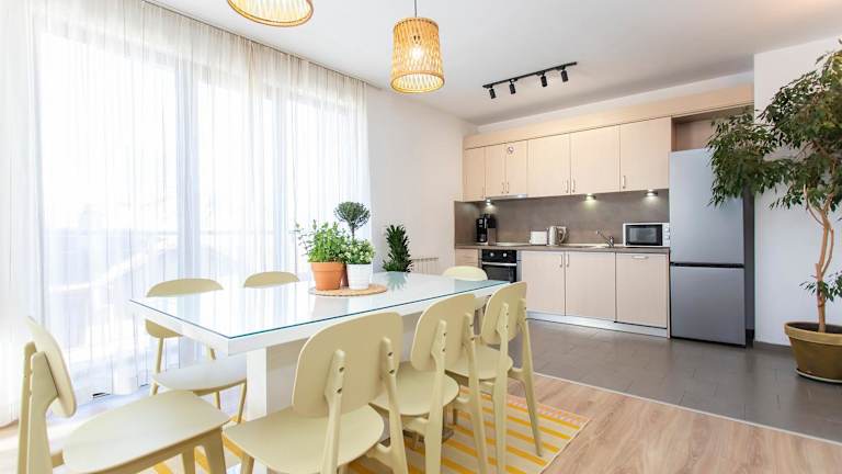 Die Apartments im Vitosha Downtown sind modern und komfortabel eingerichtet. Jedes Apartment verfügt über einen Balkon und Massivholzböden, die eine elegante und stilvolle Atmosphäre schaffen. Zur Ausstattung gehören ein LCD-Sat-TV, ein DVD-Player und eine Küchenzeile, die den Gästen die Möglichkeit geben, ihre eigenen Mahlzeiten zuzubereiten. Klimaanlage sorgt für angenehme Temperaturen während des Aufenthalts.