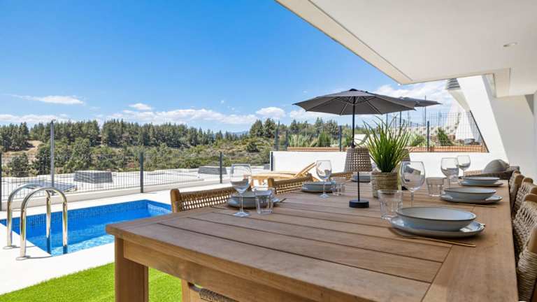 ViVi Homes - Adam Wellness, Pool, Terrace & Sea View bietet klimatisierte Übernachtungsmöglichkeiten in Form eines Ferienhauses mit 3 Schlafzimmern und 3 Badezimmern. Zur Einrichtung zählen ein eigener Pool, ein Garten sowie eine Terrasse mit Bergblick. Kostenfreies WLAN und ein kostenloser Privatparkplatz sind ebenfalls verfügbar.