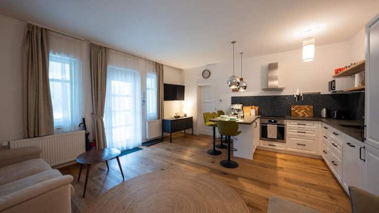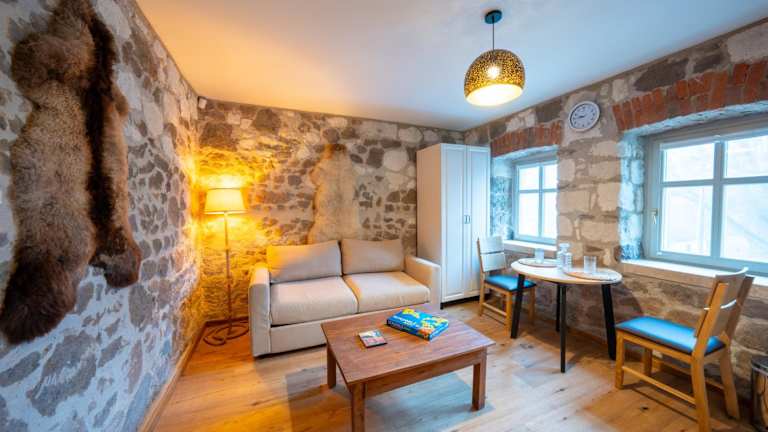 Die Unterkünfte sind klimatisiert und mit einer voll ausgestatteten Küchenzeile, einem Flachbild-TV und einem eigenen Badezimmer mit Dusche ausgestattet. Zu den zusätzlichen Annehmlichkeiten gehören kostenlose Pflegeprodukte und ein Haartrockner. Einige Wohneinheiten verfügen über einen Balkon oder eine Veranda mit Blick auf die Berge.