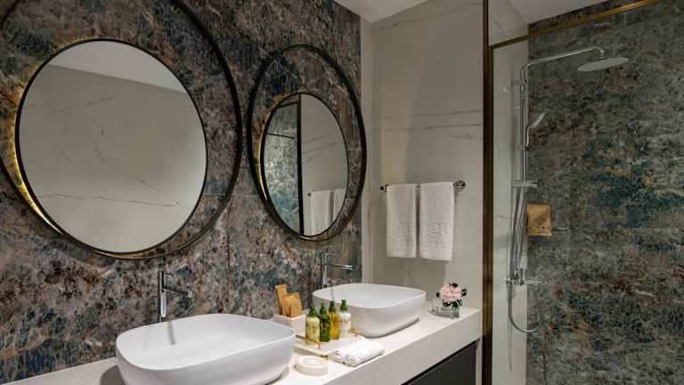 Die luxuriös ausgestatteten und elegant eingerichteten Zimmer sind modern und komfortabel. Jedes Zimmer verfügt über ein eigenes Badezimmer mit Badewanne, Dusche und Haartrockner sowie über ein Doppel- oder Kingsize-Bett, zentral regulierte Klimaanlage und Heizung, LCD-HDTV mit internationalen Kanälen, DVD-Player, Heißgetränke-Set, Bademäntel, Hausschuhe und gratis W-lan. Zu den weiteren Annehmlichkeiten zählen eine Minibar, ein digitaler Safe und ein Direktwahltelefon. Ein eigener Balkon oder eine Terrasse gehört ebenfalls zur Standardausstattung aller Zimmer.