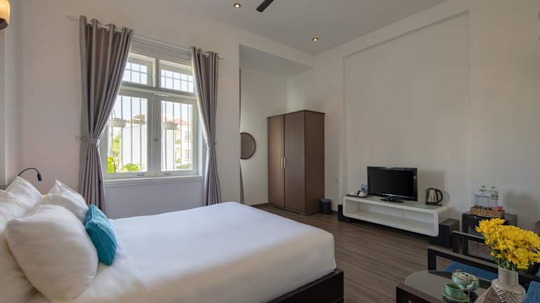 Die klimatisierten Unterkünfte im Volar Hoi An sind komfortabel und gut ausgestattet. Jedes Zimmer verfügt über eine Terrasse, einen Flachbild-TV und ein eigenes Bad mit einer Dusche und kostenlosen Pflegeprodukten. Ein Kühlschrank, eine Minibar und ein Wasserkocher sind ebenfalls vorhanden, um den Gästen den Aufenthalt so angenehm wie möglich zu gestalten.