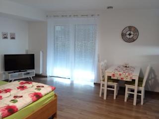 Das Hotel Volkach am Main bietet eine komfortable Unterkunft mit einer Terrasse in der malerischen Stadt Volkach. Von hier aus können Sie die umliegende Region erkunden und beliebte Sehenswürdigkeiten wie den Würzburger Dom und die Würzburger Residenz besuchen. Das Apartment verfügt über eine gut ausgestattete Küche, ein gemütliches Schlafzimmer und ein Badezimmer. Handtücher und Bettwäsche sind vorhanden. Entdecken Sie die charmante Stadt Volkach und die umliegende Natur.