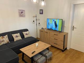 Die Ferienwohnung umfasst 1 Schlafzimmer, ein Wohnzimmer, eine Terrasse mit Gartenblick, eine gut ausgestattete Küche sowie 1 Badezimmer mit Dusche und Badewanne. Zudem ist ein Satelliten-Flachbild-TV vorhanden.