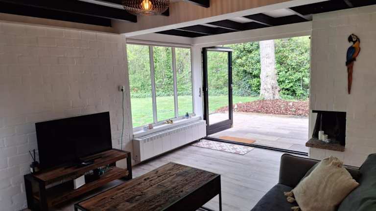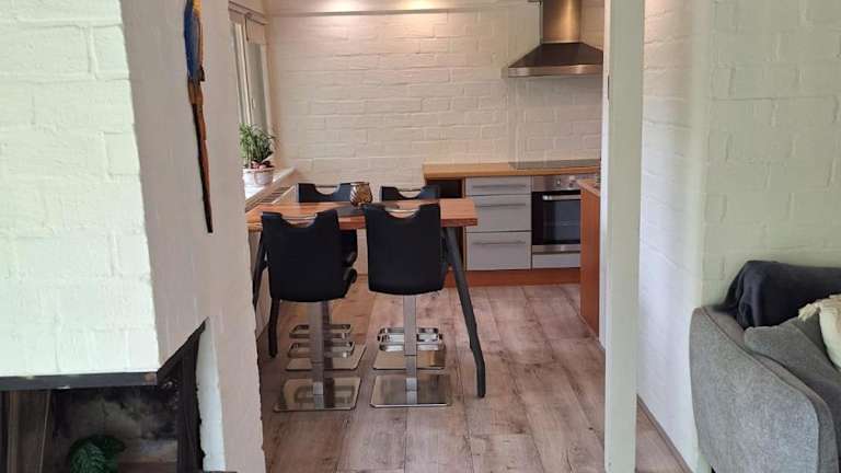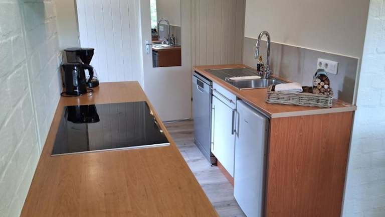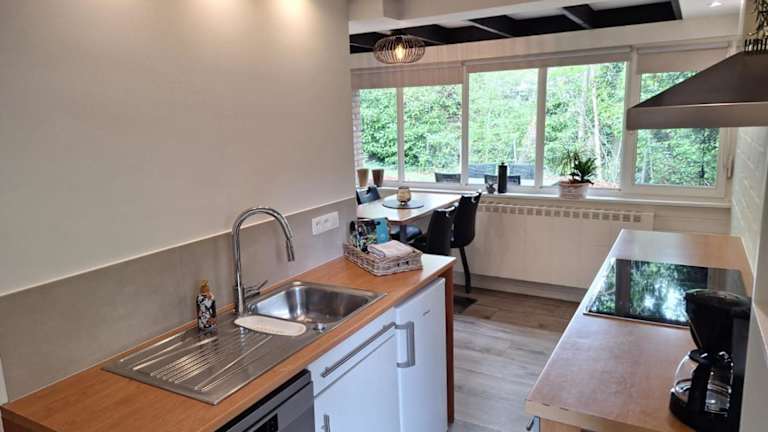Das Ferienhaus umfasst 2 Schlafzimmer und eine voll ausgestattete Küche. Außerdem bietet es einen direkten Zugang zu einer Terrasse mit Gartenblick.