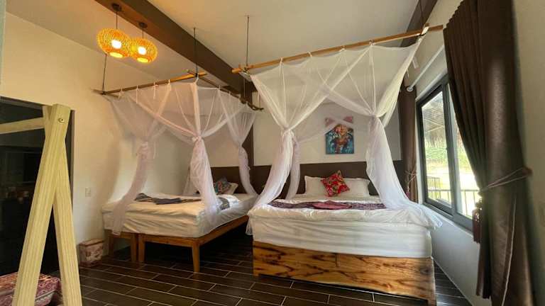 Das Vu Linh Palm House Eco Homestay in Yen Bai ist der perfekte Ort für Reisende, die eine naturnahe Unterkunft suchen und die Schönheit der Umgebung genießen möchten. Mit einem schönen Garten, einer Terrasse und kostenfreiem WLAN bietet diese Unterkunft alle Annehmlichkeiten, die Sie für einen angenehmen Aufenthalt benötigen. Die Zimmer sind komfortabel eingerichtet und bieten einen herrlichen Blick auf den Garten oder den See. Genießen Sie ein köstliches asiatisches, vegetarisches oder veganes Frühstück und erkunden Sie die Umgebung.