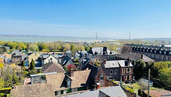 La Baie de Seine - Vue Pont de Normandie bietet Übernachtungsmöglichkeiten in einer Ferienwohnung mit drei Schlafzimmern. Die Unterkunft zeichnet sich durch kostenfreies WLAN sowie einen kostenlosen Privatparkplatz aus. Die Ferienwohnung ermöglicht einen Blick auf das Meer und auf die Stadt.