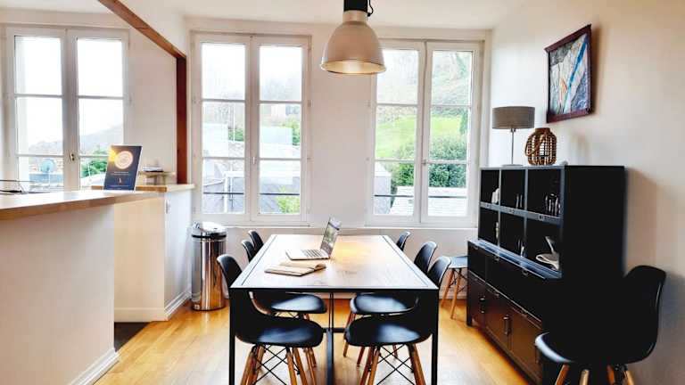 Die Unterkunft befindet sich in Honfleur, nur 1,2 km vom Strand Plage du Butin entfernt. Sie bietet einen Blick auf die Stadt und das Meer. Die Umgebung umfasst das Museum La Forge, das 400 m entfernt ist, und den Alten Hafen von Honfleur, der 600 m entfernt liegt. Der SNCF-Bahnhof Trouville-Deauville ist 14 km entfernt, während der Flughafen Deauville 9 km entfernt ist.