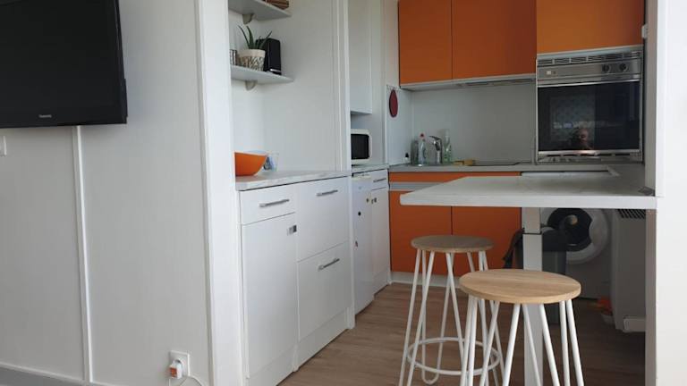 Das Apartment im VUE PANORAMIQUE bietet seinen Gästen einen komfortablen Aufenthalt mit Annehmlichkeiten wie einem Flachbild-TV, einem gemütlichen Sitzbereich und einem CD-Player. Die voll ausgestattete Küche mit Kühlschrank, Backofen, Mikrowelle und Kaffeemaschine ermöglicht es Ihnen, Ihre eigenen Mahlzeiten zuzubereiten. Genießen Sie den Meerblick vom Balkon aus und fühlen Sie sich wie zu Hause.