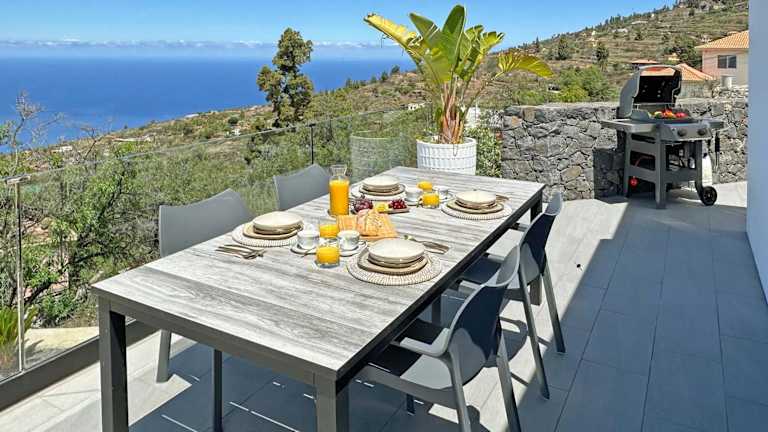 Tijarafe, in einer Umgebung mit Blick auf die Berge und das Meer. Der nächstgelegene Flughafen, La Palma, ist 45 km entfernt.