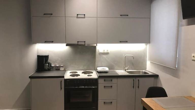 Die Ferienwohnung besteht aus einem Schlafzimmer, einer Küche und einem Badezimmer. Zur Ausstattung gehören Klimaanlage, Handtücher und Bettwäsche. Die Unterkunft bietet einen kostenlosen Internetzugang über WLAN.