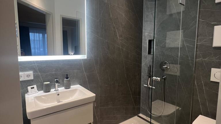 Die Unterkunft verfügt über eine voll ausgestattete Küche, die mit Kühlschrank, Geschirrspüler, Ofen, Herdplatte, Toaster, Kaffeemaschine und Wasserkocher ausgestattet ist.