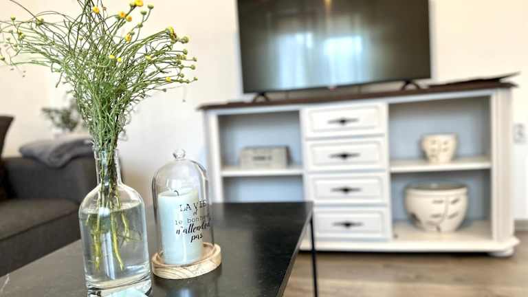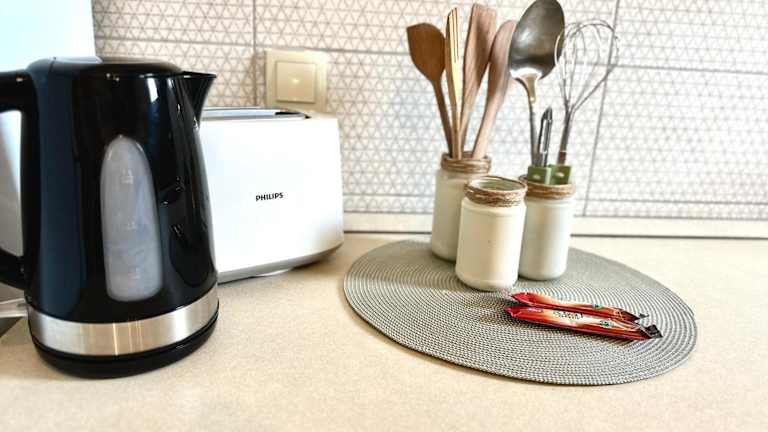 Die Ferienwohnung ist klimatisiert und besteht aus einem Schlafzimmer, einem Wohnzimmer und einer voll ausgestatteten Küche mit Kühlschrank und Wasserkocher. Das Badezimmer ist mit Badewanne oder Dusche sowie einem Haartrockner ausgestattet. Handtücher und Bettwäsche werden bereitgestellt.