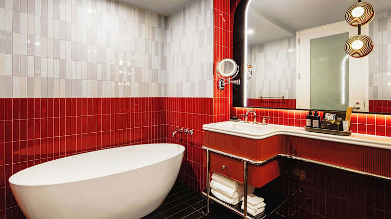 Die Zimmer im W Hoboken sind modern und komfortabel eingerichtet und verfügen über Annehmlichkeiten wie einen 50-Zoll-TV, eine Kaffeemaschine, einen Bluetooth-Radiowecker und USB-Anschlüsse. Bademäntel und Designer-Pflegeprodukte stehen den Gästen zur Verfügung. Einige Zimmer bieten zudem einen atemberaubenden Blick auf die Skyline von Manhattan und den Hudson River.