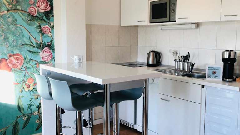 Die Ferienwohnung verfügt über 1 Schlafzimmer, ein Wohnzimmer sowie eine voll ausgestattete Küche, die mit einem Kühlschrank und einer Kaffeemaschine ausgestattet ist. Zudem gibt es 1 Badezimmer mit Dusche und Haartrockner. Handtücher und Bettwäsche können gegen Aufpreis bereitgestellt werden.