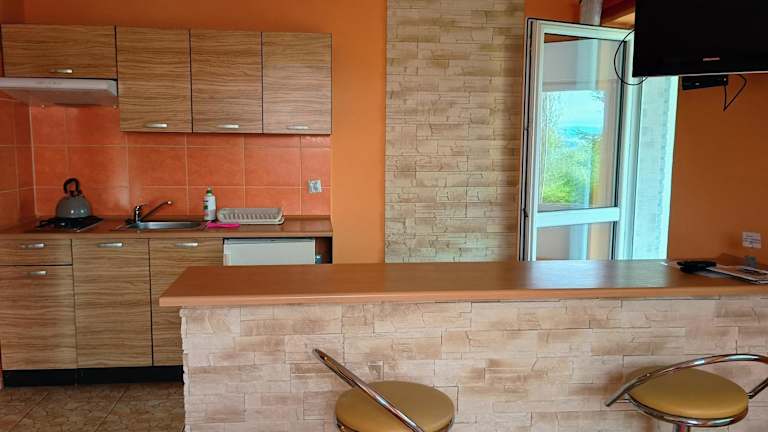 In jeder Wohneinheit der Unterkunft W zieleni sind ein Schlafsofa, ein Flachbild-TV mit Kabelkanälen, eine gut ausgestattete Küchenzeile und ein eigenes Badezimmer mit Dusche vorhanden.
