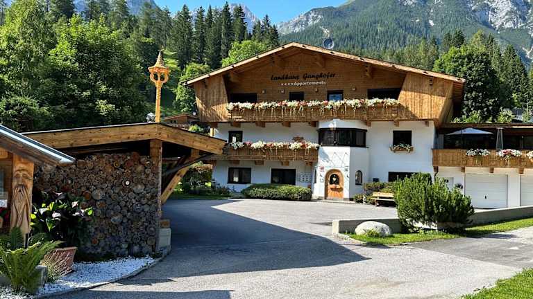 W2 Haus Ganghofer bietet eine gemütliche Unterkunft mit Garten, Terrasse und Restaurant. Es stehen kostenlose WLAN-Optionen zur Verfügung, ergänzt durch einen Blick auf die umliegenden Berge. Ein kostenloser Privatparkplatz ist ebenfalls vorhanden.