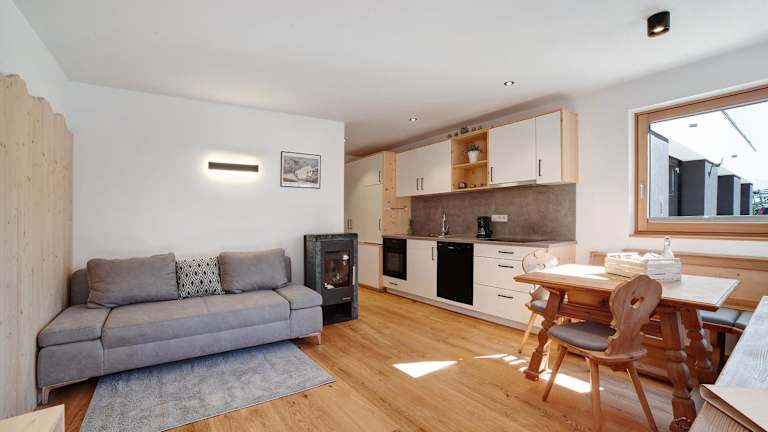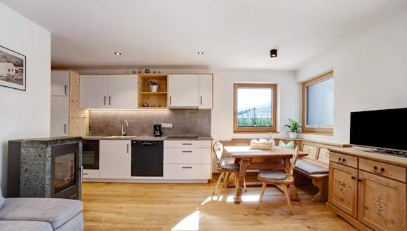 Die Ferienwohnung verfügt über ein Schlafzimmer, ein Badezimmer, Bettwäsche, Handtücher, einen TV mit Satellitenkanälen, eine voll ausgestattete Küche sowie eine Veranda/Patiomi mit Bergblick. Ein Kinderspielplatz ist ebenfalls vorhanden.