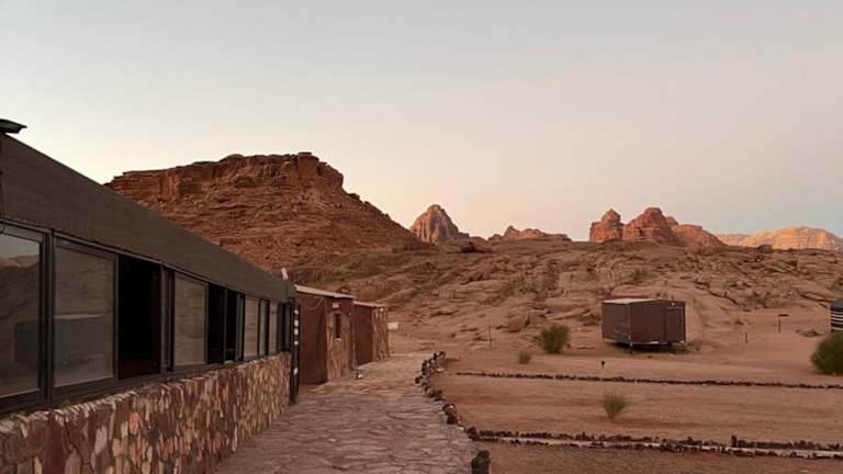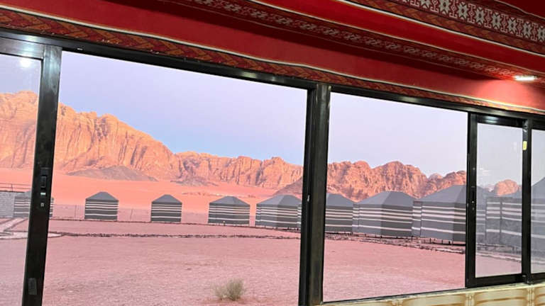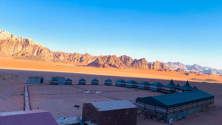 Das Desert Stars Rum Camp liegt in der beeindruckenden Wüstenlandschaft von Wadi Rum. Hier können Sie die Schönheit der Natur und die Ruhe der Wüste erleben. Die Unterkunft bietet einen herrlichen Blick auf die umliegenden Berge und ist der perfekte Ausgangspunkt für Erkundungen in der Region. Der internationale Flughafen King Hussein ist nur 60 km entfernt und ermöglicht eine bequeme Anreise.