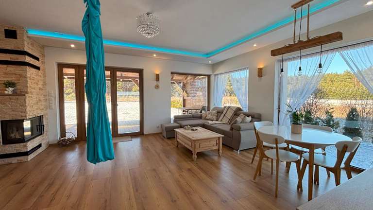 Wakacje Mazury, Willa Ametyst überzeugt durch eine ruhige Umgebung mit Blick auf den Garten. Diese Villa umfasst eine Terrasse und einen Balkon und ist ideal für Erholungssuchende. Zudem sind in der Unterkunft zahlreiche Annehmlichkeiten vorhanden, darunter kostenloses WLAN, ein Garten und Grillmöglichkeiten. Die Villa ist privat geführt und bietet Platz für größere Gruppen mit fünf Schlafzimmern und zwei Badezimmern.