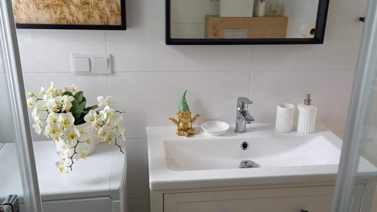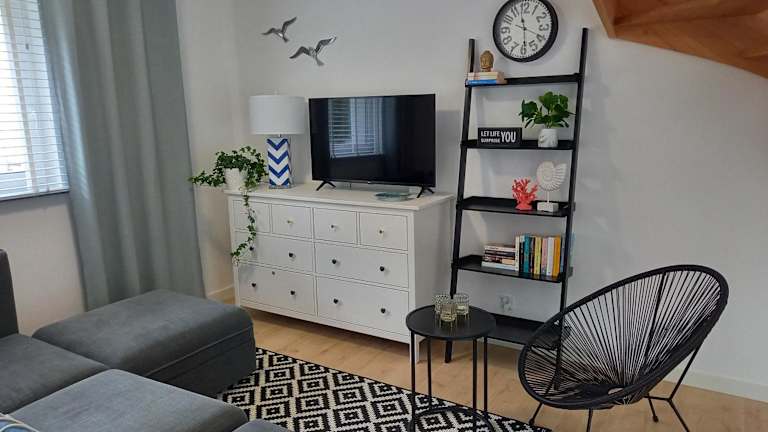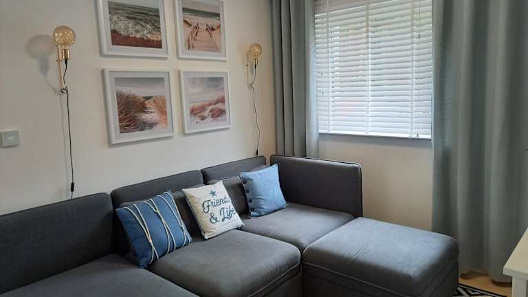 Die Ferienwohnung umfasst 1 Schlafzimmer und ein Wohnzimmer. Sie ist mit einer voll ausgestatteten Küchenzeile ausgestattet, die einen Kühlschrank und eine Kaffeemaschine beinhaltet. Zudem gibt es ein Badezimmer mit Dusche und Haartrockner. Handtücher und Bettwäsche werden bereitgestellt.