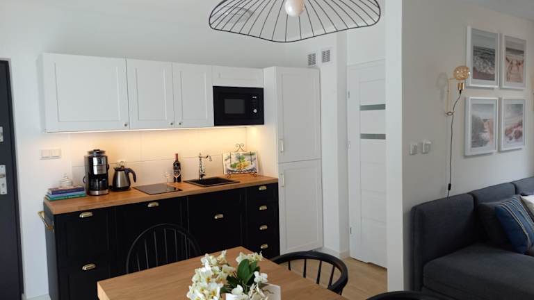 Wakacyjny Apartament w Pobierowie bietet eine Unterkunft mit Gartenblick, Balkon und Wasserkocher. Die Ferienwohnung verfügt über eine Terrasse sowie kostenlosen Privatparkplatz.