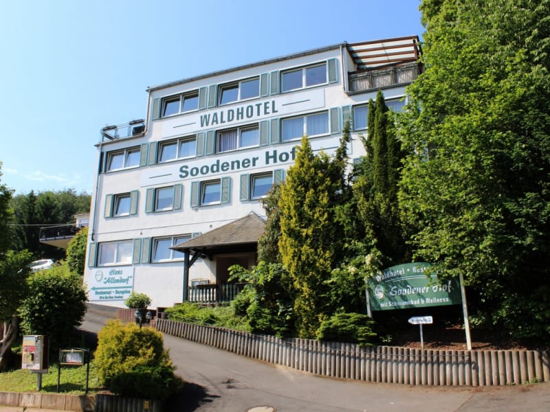 Das Waldhotel Soodener-Hof besteht aus 4 Häusern - Haus Sooden, Haus Waldblick, Haus Allendorf und der Villa Werrablick - und profitiert von einer einmalig schönen Umgebung mit ruhiger und erholsamer Atmosphäre, und seinem atemberaubenden Blick in das Tal. Dieser lässt erkennen, warum Bad Sooden-Allendorf die Perle des Werratals genannt wird. Jedes der vier Häuser besitzt seinen eigenen Charme und ist individuell geschnitten. Im Haus Sooden befindet sich die Rezeption, sowie das Restaurant Frau Holle mit der Hotelbar. Über eine kleine Außenbrücke gelangt man in das Haus Waldblick, welches direkt am Wald gelegen ist. Im Haus Allendorf finden Sie den Wellnessbereich mit Panoramablick über das Land. Vom Haus Allendorf sind es ca. 70 Meter durch den Außenbereich der Hotelanlage zur Villa Werrablick. Die in 2009 erweiterte Wellnesslandschaft verfügt über ein Schwimmbad, finnische Sauna, Außensauna, Dampfsauna, einen Beauty Spa Bereich und großzügige Ruhezonen im Innenbereich und auf der großen Sonnenterrasse. Nach der Teilrenovierung im Jahre 2018 erstrahlen in 3 von 4 Häusern die Zimmer mit neuen Boxspringbetten und Holzboden. Das Waldhotel Soodener-Hof bietet demnach eine perfekte Anlaufstelle für Ihren nächsten Kurzurlaub!