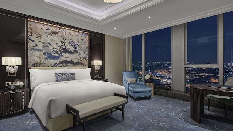 Die Zimmer im Waldorf Astoria Chengdu sind geräumig, ruhig und bieten einen herrlichen Blick auf die Stadt. Sie sind klimatisiert und schallisoliert und verfügen über moderne Annehmlichkeiten wie einen TV, einen Schreibtisch und ein Sofa. Das Badezimmer ist mit einer Badewanne und einer Dusche ausgestattet und es stehen kostenlose Pflegeprodukte und ein Haartrockner zur Verfügung.