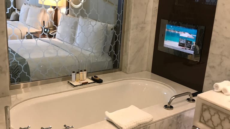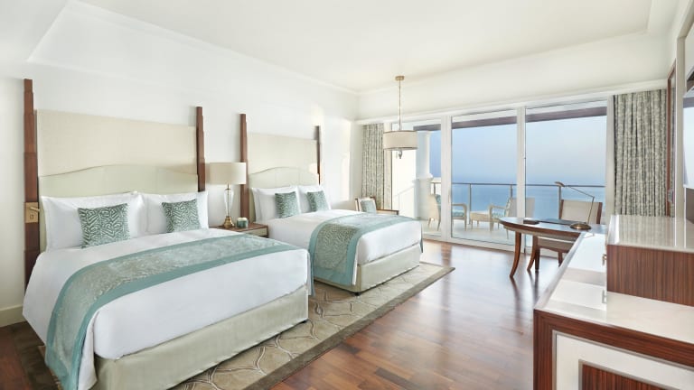 Die Zimmer und Suiten im Waldorf Astoria Dubai Palm Jumeirah sind luxuriös und modern eingerichtet und bieten Ihnen alles, was Sie für einen komfortablen Aufenthalt benötigen. Jedes Zimmer verfügt über ein geräumiges Badezimmer mit einer separaten Badewanne, einen Balkon mit Blick auf die Palm Jumeirah oder die Skyline von Dubai, einen gemütlichen Sitzbereich, einen Schreibtisch und einen Flachbild-TV. WLAN steht Ihnen in allen Zimmern kostenlos zur Verfügung.