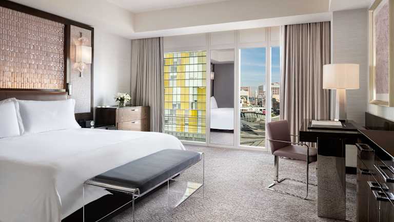 Die Zimmer im Waldorf Astoria Las Vegas sind in verschiedenen Typen verfügbar, darunter Doppelzimmer und Suiten, alle mit Blick auf den Strip oder die Stadt. Die moderne Ausstattung umfasst Klimaanlage, Flachbild-Kabel-TV, Internetzugang, Minibar, sowie luxuriöse Badezimmer mit Bademänteln und Pflegeprodukten.