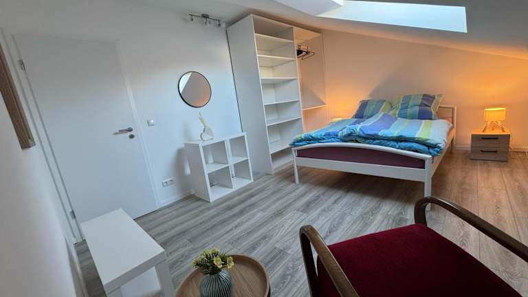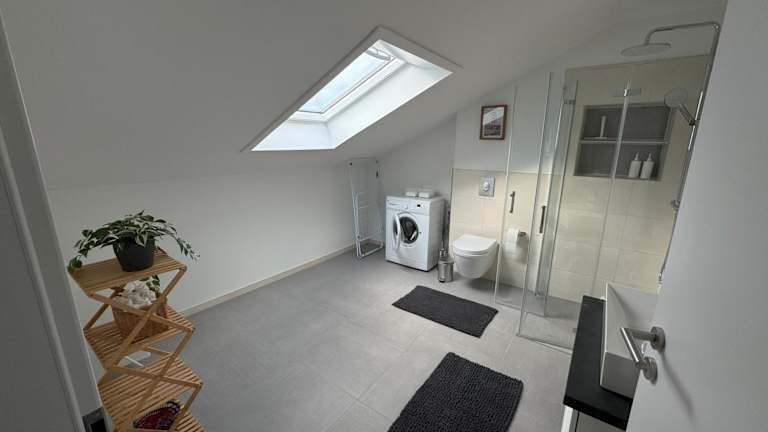 Die Ferienwohnung umfasst zwei Schlafzimmer, ein Wohnzimmer, ein Badezimmer mit Dusche und eine gut ausgestattete Küche mit Kühlschrank und Geschirrspüler. Eine Terrasse mit Gartenblick ist ebenfalls vorhanden. Handtücher und Bettwäsche werden bereitgestellt.