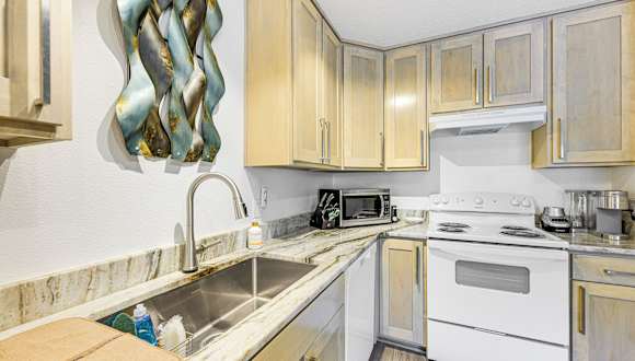 Die Ferienwohnung bietet ein Schlafzimmer, einen Flachbild-TV sowie eine voll ausgestattete Küche. Zur Küchenausstattung gehören ein Kühlschrank, ein Geschirrspüler, eine Waschmaschine, ein Ofen und eine Mikrowelle. Handtücher und Bettwäsche werden bereitgestellt.