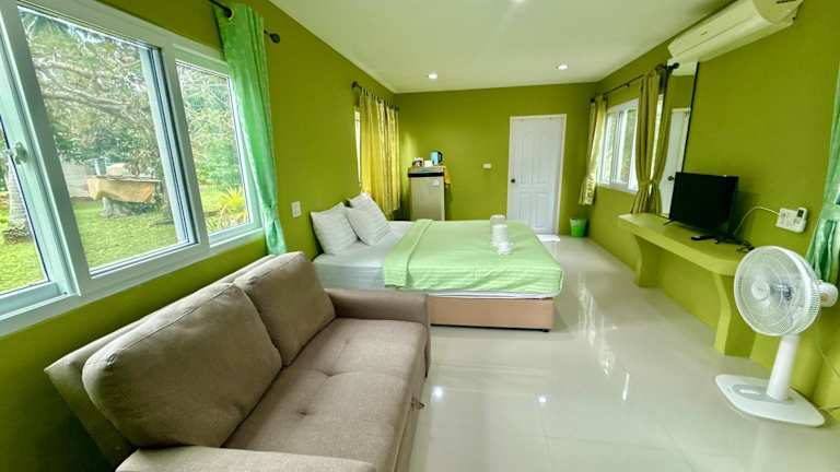 Die Bungalows im Wandee Resort Bankrut bieten einen gemütlichen Sitzbereich und ein eigenes Bad mit Dusche und kostenlosen Pflegeprodukten. Zur Ausstattung gehören auch Klimaanlage und TV. Die Zimmer sind komfortabel und bieten alles, was Sie für einen angenehmen Aufenthalt benötigen.