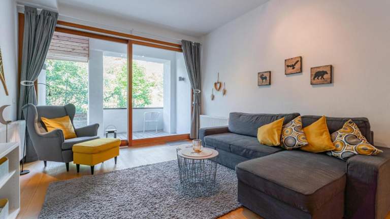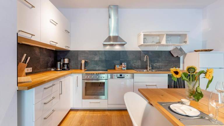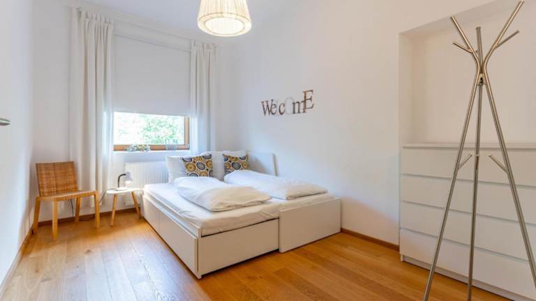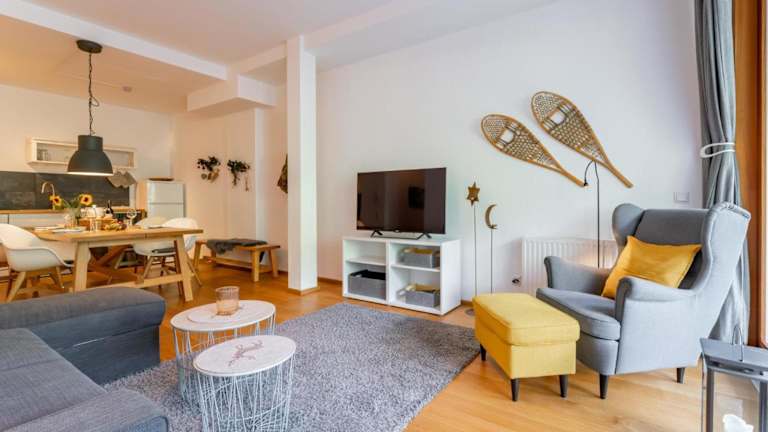 Die Ferienwohnung verfügt über zwei Schlafzimmer und eine Küche, die mit einem Kühlschrank und einem Geschirrspüler ausgestattet ist. Zu den weiteren Annehmlichkeiten zählen ein TV, ein Sitzbereich und ein Badezimmer mit Dusche. Handtücher und Bettwäsche werden bereitgestellt.
