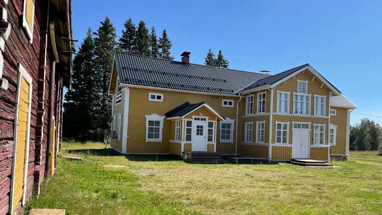 Wanha Niemelä, maalaistalo Lapissa ist eine Villa mit einem Balkon und Blick auf den Garten. Die Unterkunft bietet eine Gartenlandschaft und eine Bar.