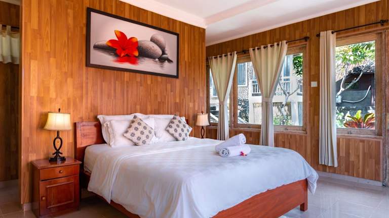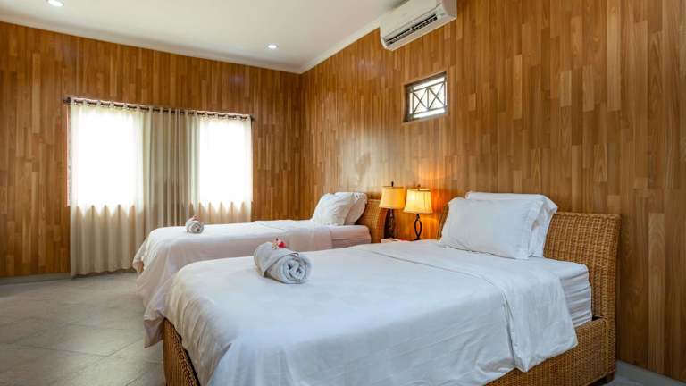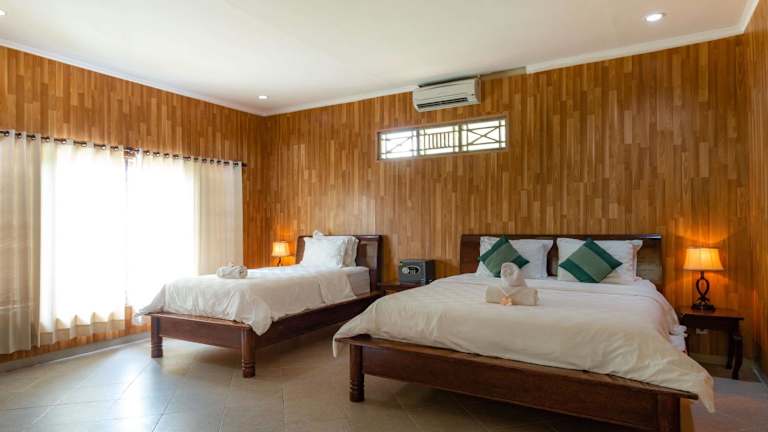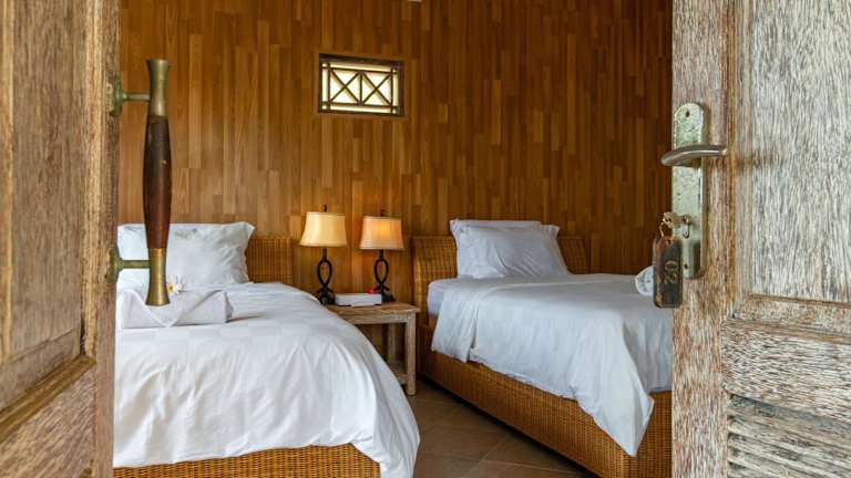 Die Bungalows sind mit Klimaanlage oder Ventilator ausgestattet und verfügen über antike Holzbetten sowie Moskitonetz. Jedes Bungalow hat ein eigenes Bad mit Dusche. Tägliche Reinigung ist inklusive.