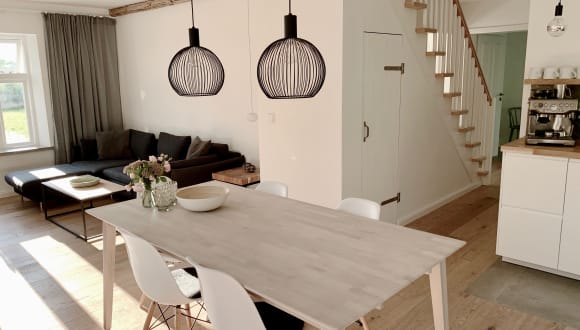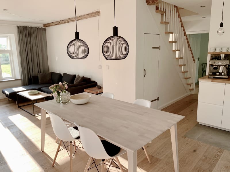 Wir bieten euch Raum für Erholung und Entspannung in unseren teilweise baubiologisch ausgebauten und renovierten 5-Sterne Ferienwohnungen (Hofappartement, Gartenappartement und Messingbettappartement), die sich im Obergeschoss des Bauernhauses befinden. Freiliegende Holzbalken, Lehmwände mit Wandstrahlungsheizung und teilweise Holzböden sowie die helle und freundliche Atmosphäre sind mit Feinsinn gewählt. Kein Appartement ist wie das andere, jedes ist individuell eingerichtet. Drei Ferienhäuser, die unweit des Hofes liegen, bieten Raum für die unterschiedlichsten Bedürfnisse. Das 5-Sterne Luxushaus "NordseeStil" lässt keine Wünsche offen, Sauna, Kaminofen, 2 Terrassen und drei Schlafzimmer ist im modernen Skandistil eingerichtet. Unsere idyllisch gelegene 4-Sterne "Reetdachkate 1813" mit Kaminofen und zwei Schlafzimmern ist modern renoviert und typisch für die Region. Oft dient das Haus als Postkartenmotiv, gerade wegen des alt angelegten Bauerngartens. Für den einfachen Geschmack bietet unser Ferienhaus "Die Scheune" preisgünstigen Urlaub. Das ehemalige Wirtschaftsgebäude des Verwalterhauses haben wir renoviert und bietet zwei Schlafzimmer und eine Wohnküche ohne Geschirrspülmaschine und im Duschbad steht eine Waschmaschine. Zum großen gemeinschaftlichen Garten mit dem Haus NordseeStil befindet sich eine eigene Sonnenterrasse mit Holzkohlegrill. Der Garten mit Blick über die anliegenden Felder bietet viel Platz zum Spielen, zum Zurückziehen und im Herbst kann man das Obst von den Bäumen ernten. Mit einer geschmack- und stilvollen Einrichtung möchten wir euch den Aufenthalt bei uns so angenehm wie möglich gestalten.