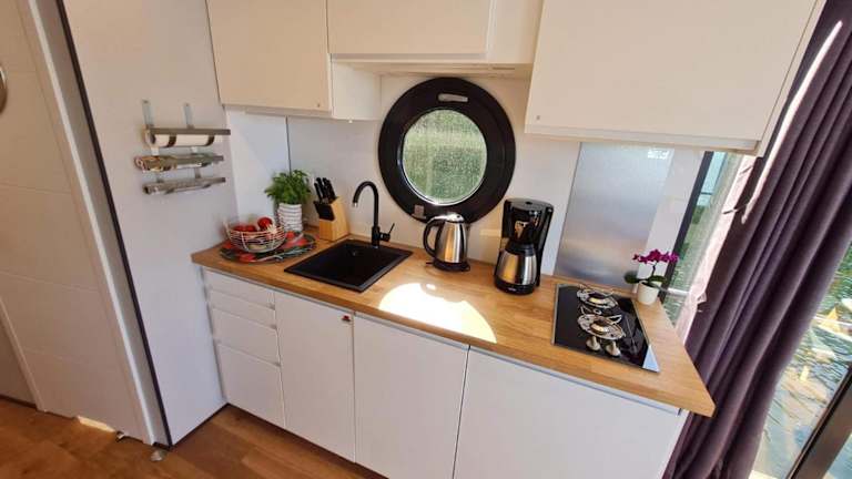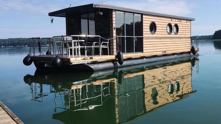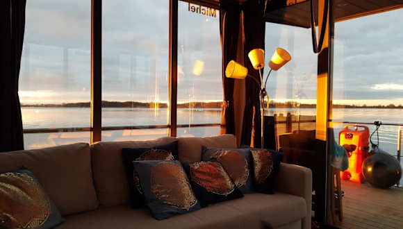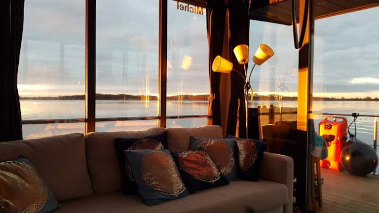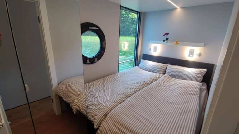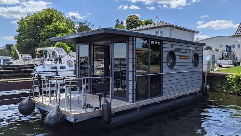 Wasserapartment Cityport - Schwimmende Ferienwohnung bietet moderne Übernachtungsmöglichkeiten in einer schwimmenden Einheit. Die Unterkunft zeichnet sich durch eine Terrasse mit Flussblick sowie verschiedene Annehmlichkeiten wie kostenloses WLAN und einen Privatparkplatz aus.