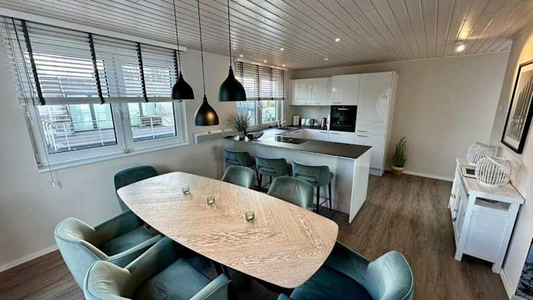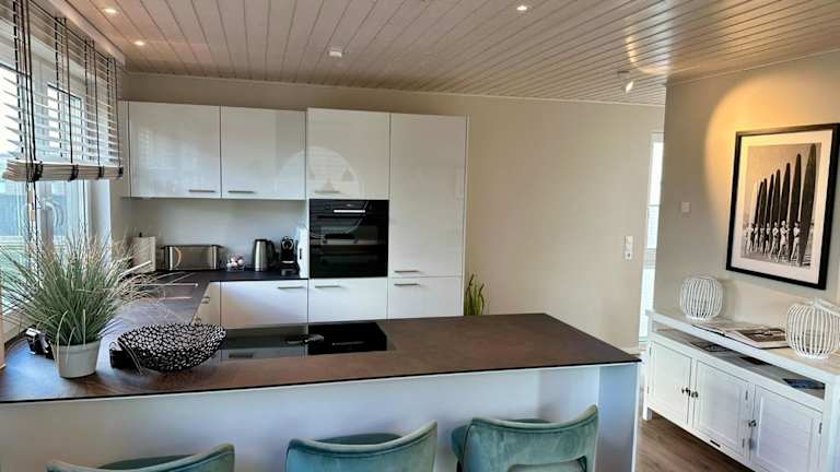 Das Wasserhaus Schlei verfügt über eine voll ausgestattete Küchenzeile mit Kühlschrank, Geschirrspüler, Waschmaschine, Ofen und Mikrowelle, sodass die Gäste ihre eigenen Mahlzeiten zubereiten können. Weitere Verpflegungsmöglichkeiten sind nicht angegeben.
