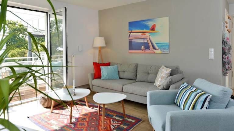 Wassermusik bietet Übernachtungsmöglichkeiten direkt am Strand. Die Unterkunft verfügt über eine Terrasse und kostenfreies WLAN. Ein kostenloser Privatparkplatz ist ebenfalls verfügbar. Die Ferienwohnung ist mit einem Balkon ausgestattet und bietet Meerblick.