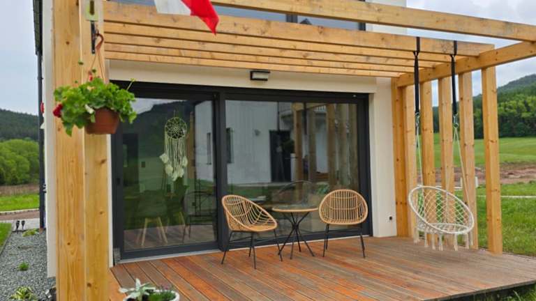 Wataha pod Basztami - Alfa - Domki całoroczne ist eine Unterkunft mit Gartenblick, die eine Terrasse und Bergblick bietet. Die Einrichtung umfasst einen Garten und kostenlosen Privatparkplatz.